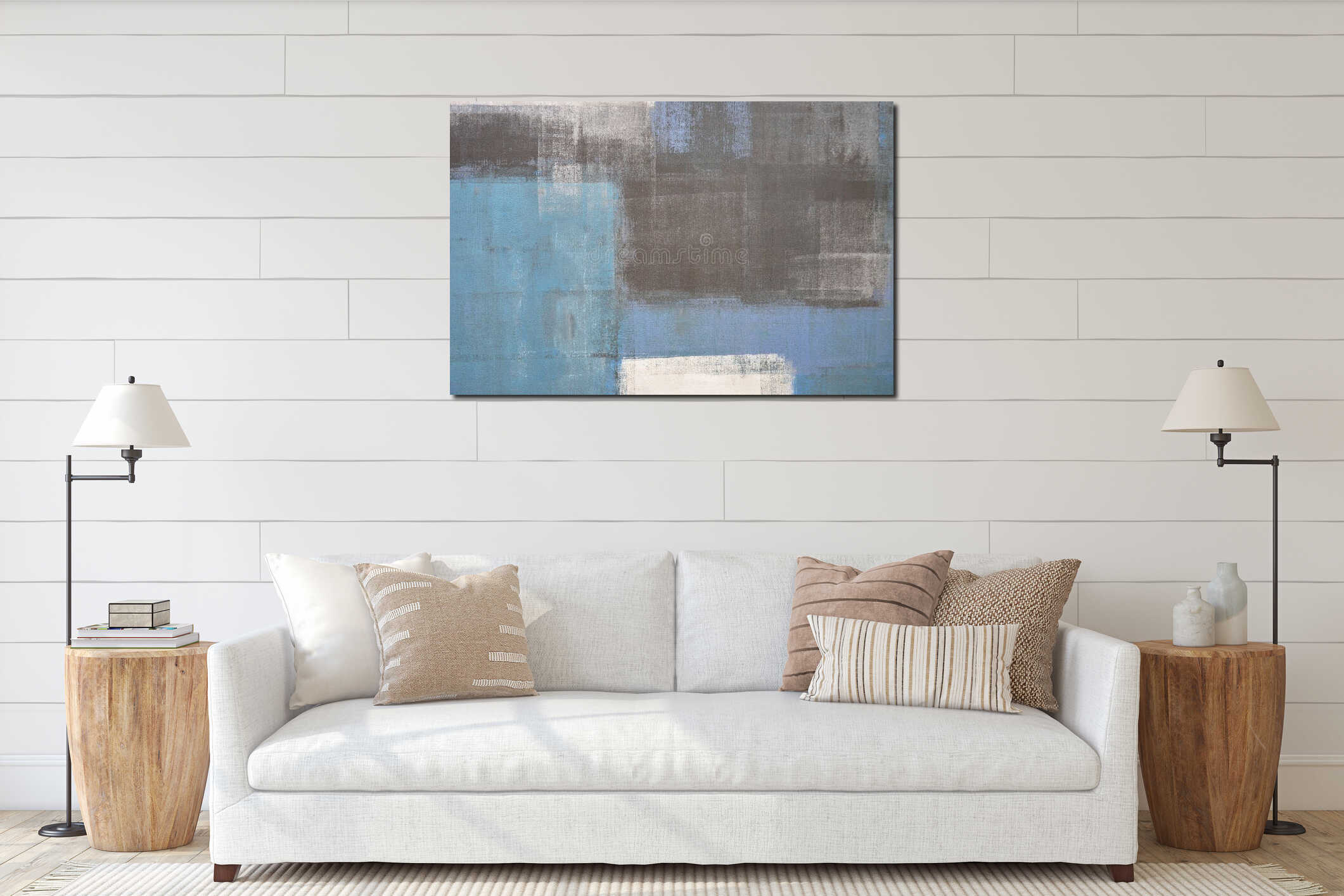 Blue and Grey Abstract Art Painting Canvas Print