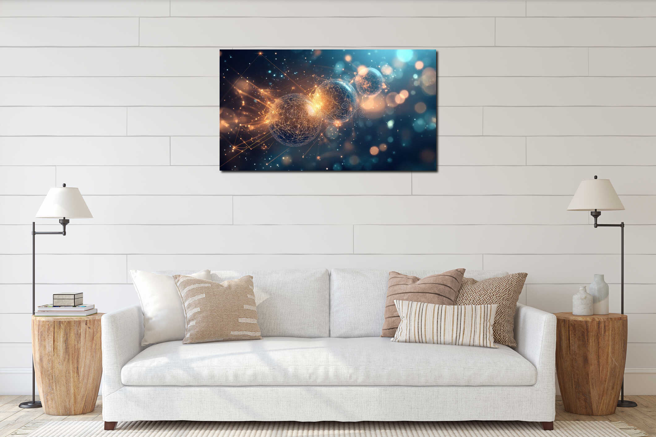 Explore interconnected virtual worlds with luminous spheres and radiant light pathways emphasizing creativity and Canvas Print