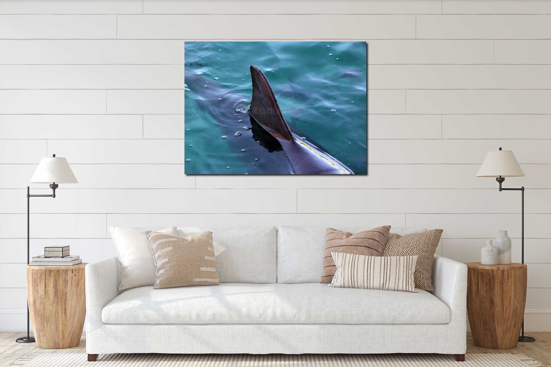 Dorsal fin of a Dolphins are a widely distributed and diverse group of aquatic mammals. Canvas Print