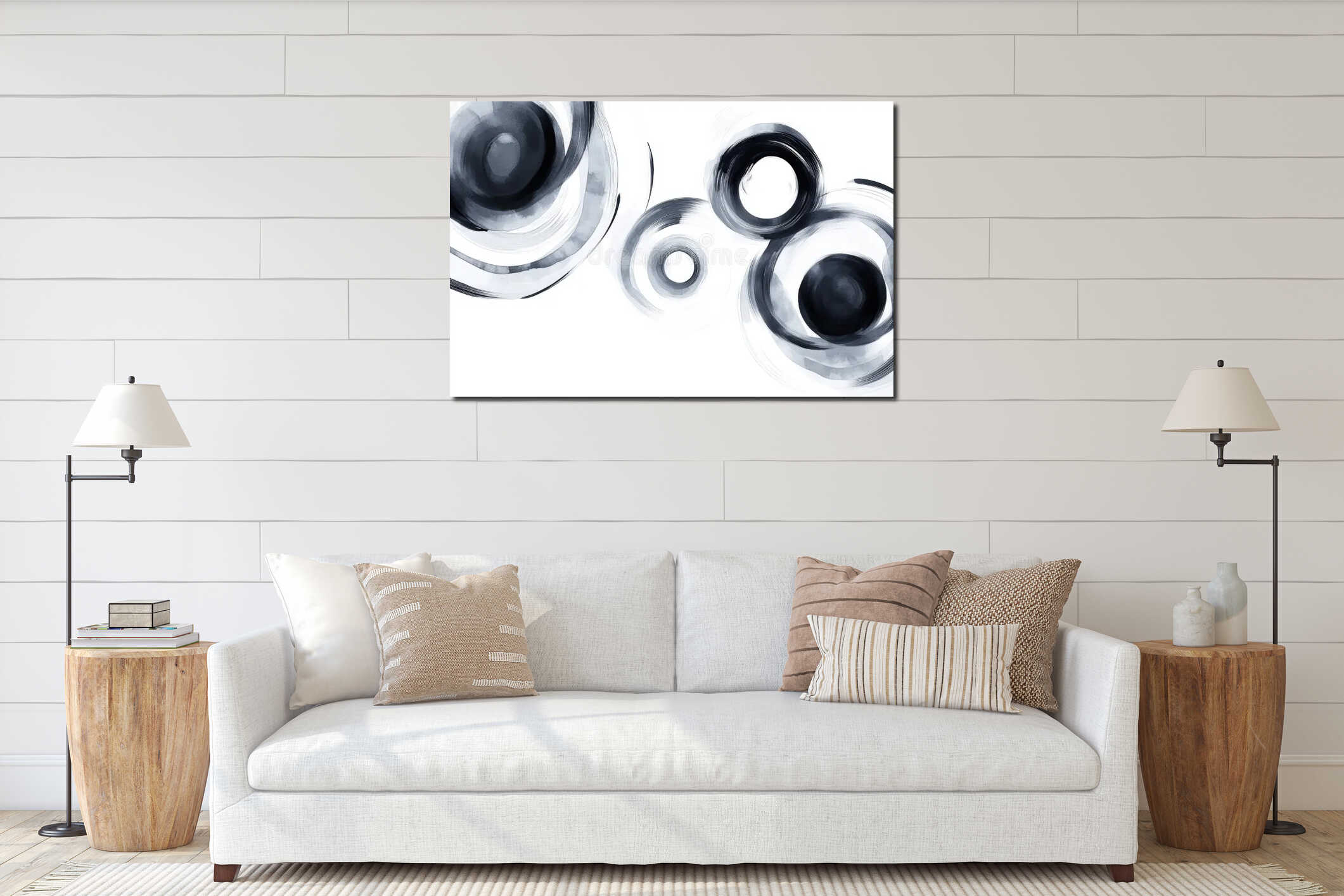 Monochrome abstract circles with watercolor texture and fluid motion Canvas Print