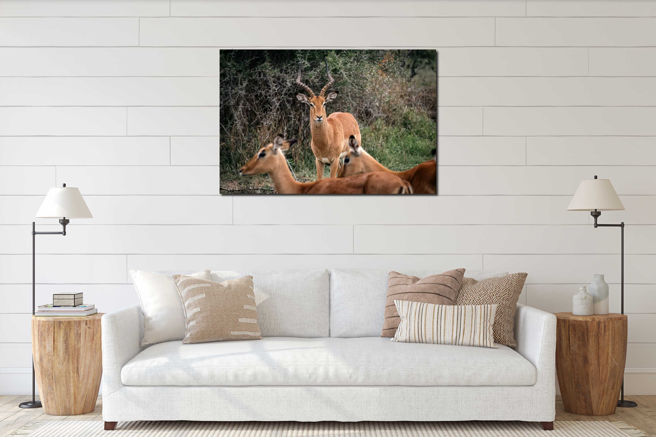 Animals wildlife. Impala male guards a group of females Canvas Print
