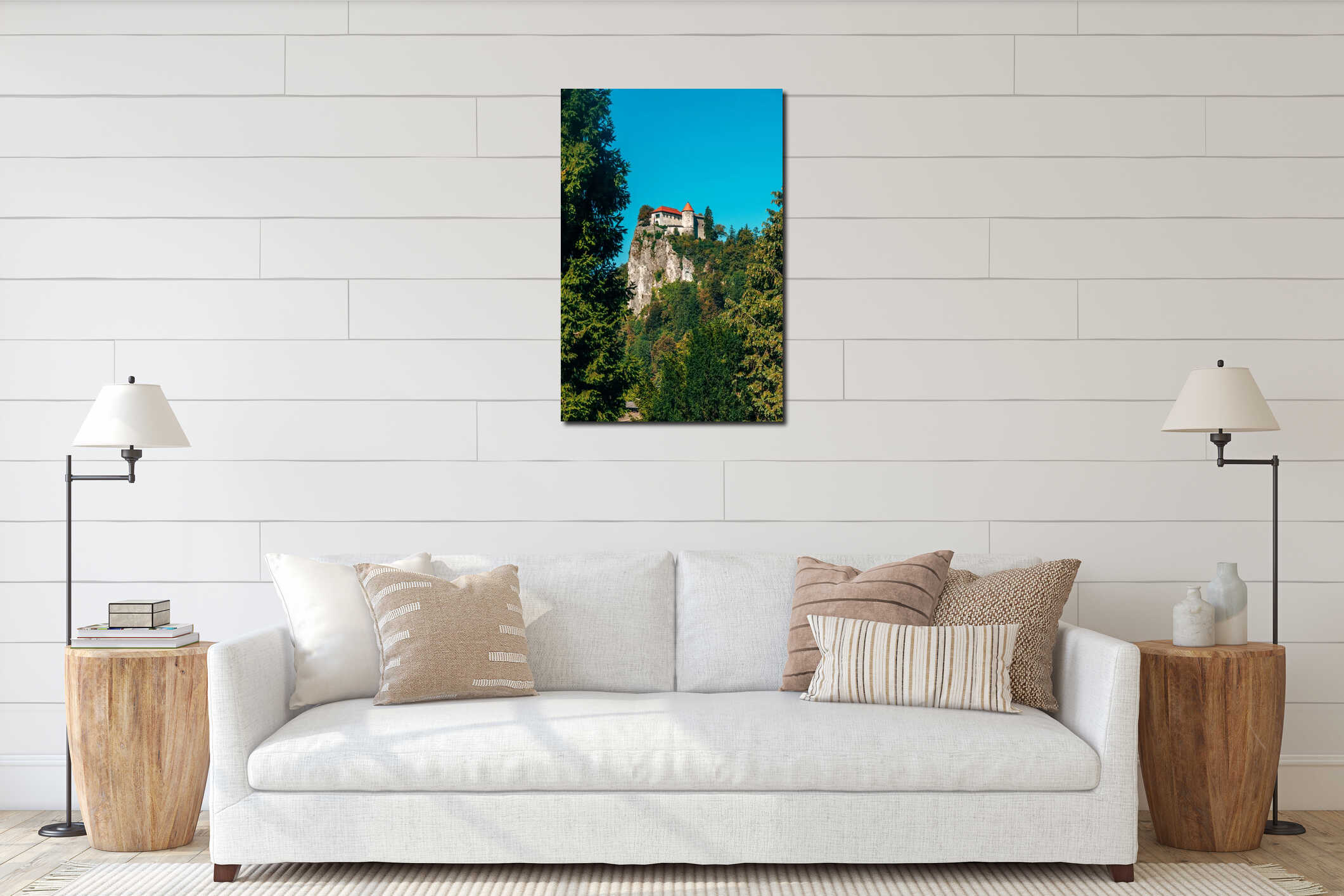 Historic Bled Castle, the oldest castle in Slovenia, built in 1004, showcasing medieval architecture and cultural heritage on a Canvas Print