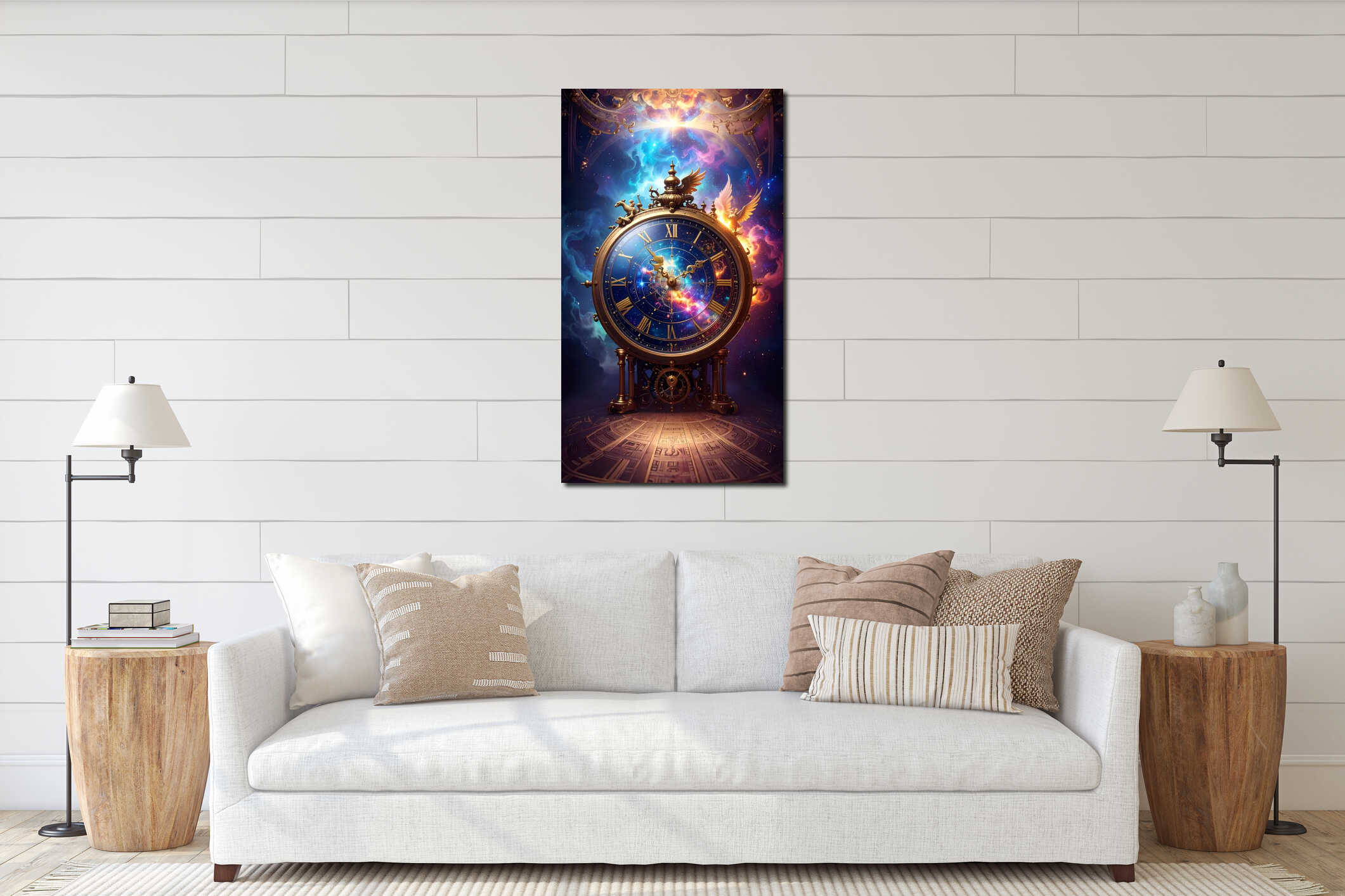 Ancient Astronomical Clock with Mythical Creatures. Astral Geometry. Generated Image Canvas Print