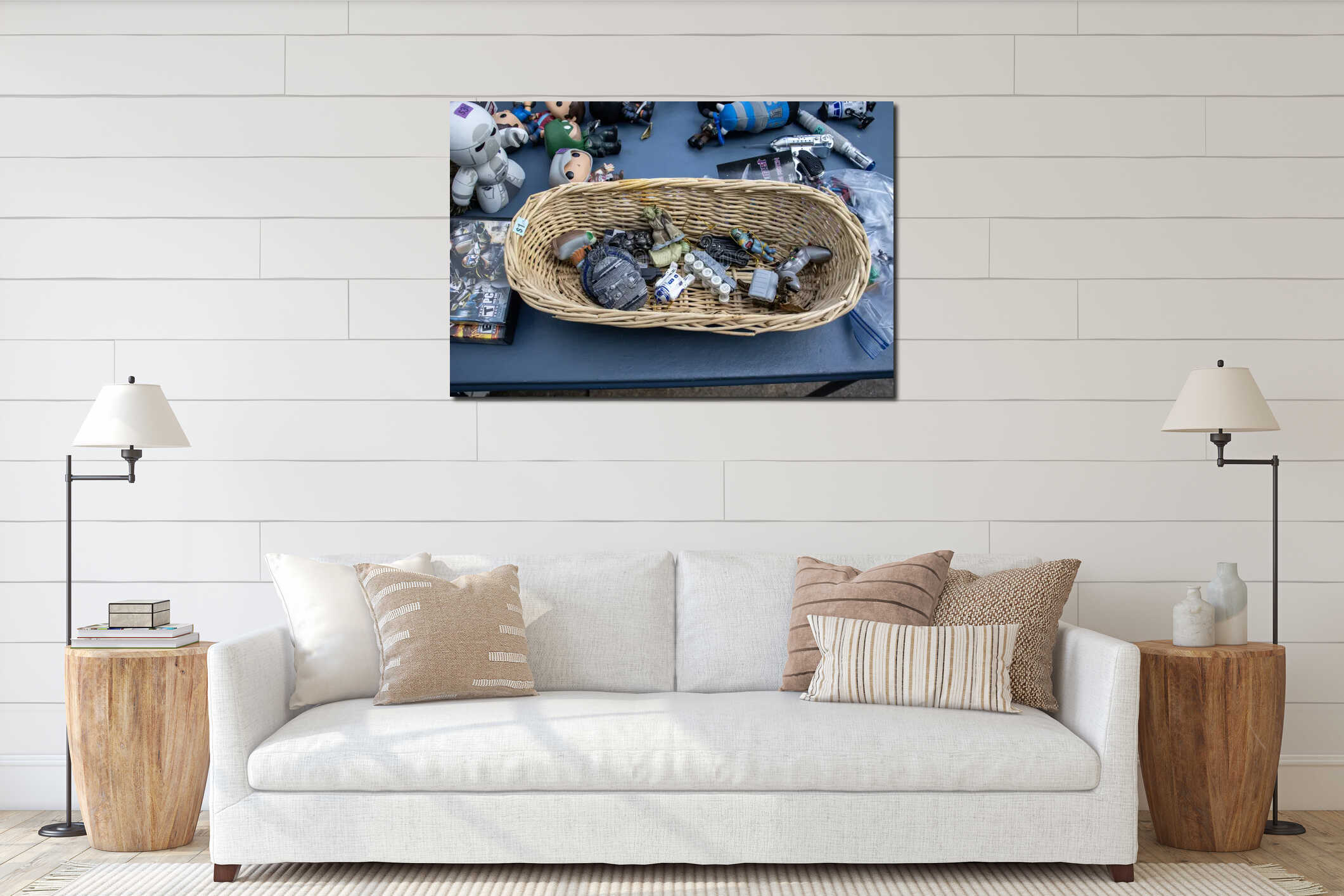 Scifi and fantasy toys and collectibles in a garage sale Canvas Print
