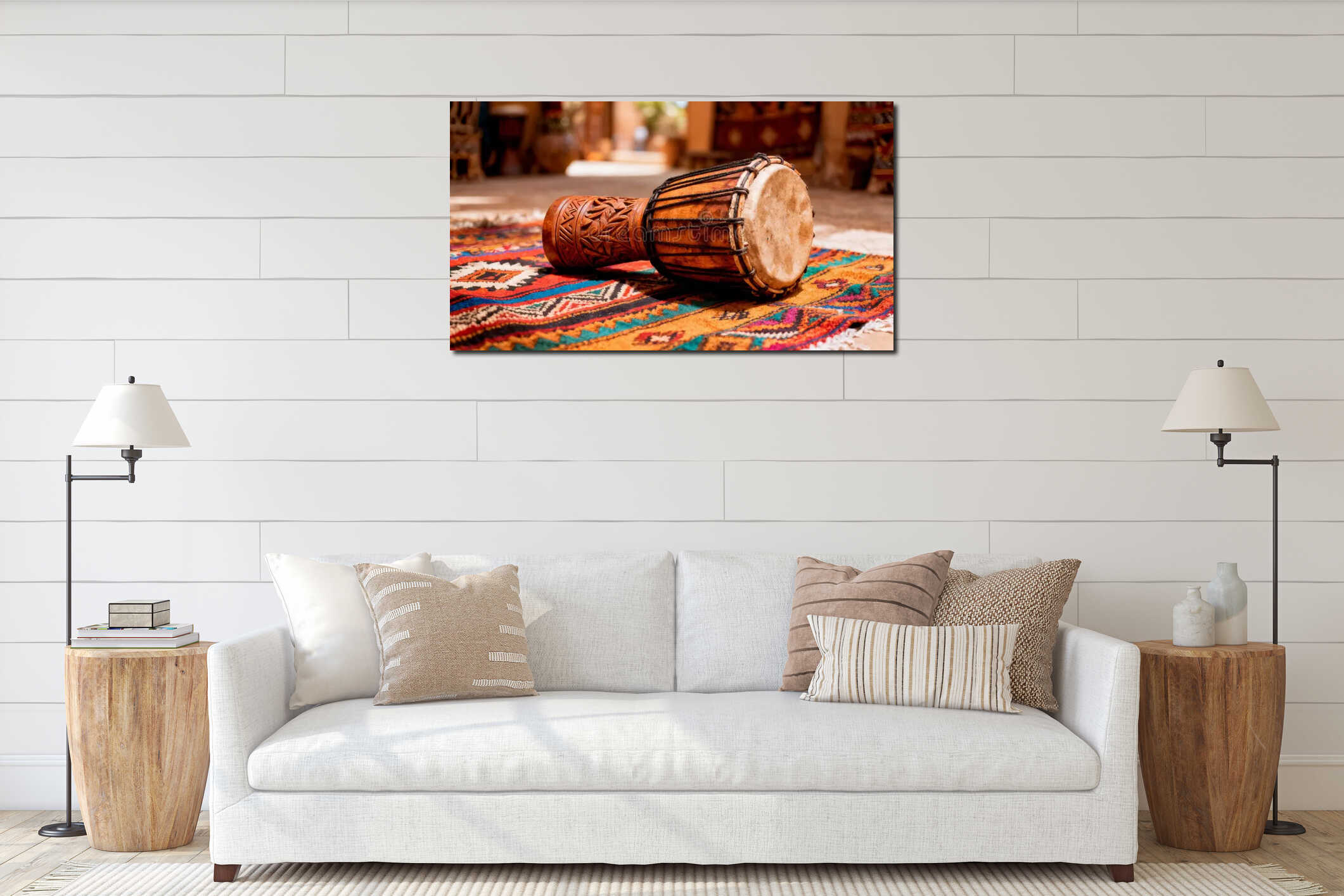 Traditional African Djembe Drum on Ethnic Textile for World Music and Cultural Content Canvas Print